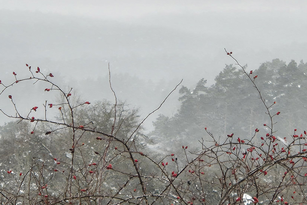 Nebel über dem Land und die Natur trotzt dem Grau.